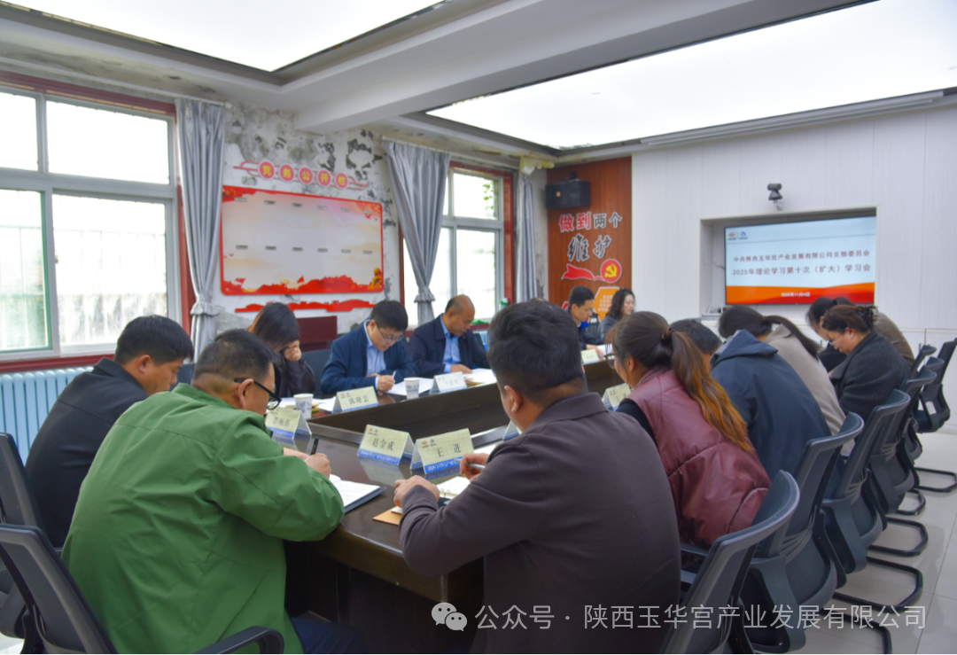 8月19日,陕西玉华宫产业发展有限公司2025年党支部理论学习第八次(扩大)学习会。公司领导班子、全体党员、各部门负责人及职工代表二十余人参加会议。会议集中学习了《习近平总书记关于意识形态工作重要论述》 《促进民营经济健康发展、高质量发展》 《赵一德在咸阳市调研时...